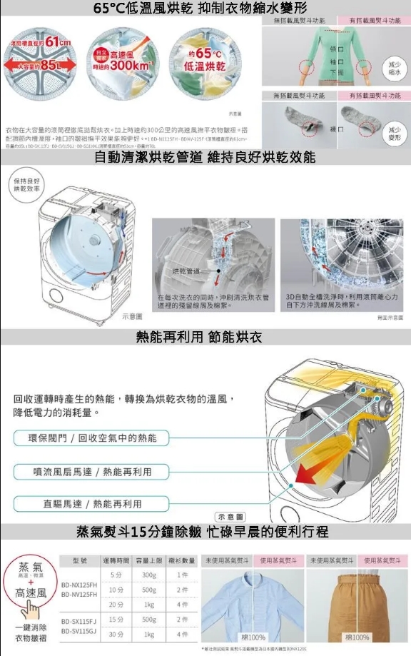 ■ 65°C低溫風烘乾 抑制衣物縮水變形