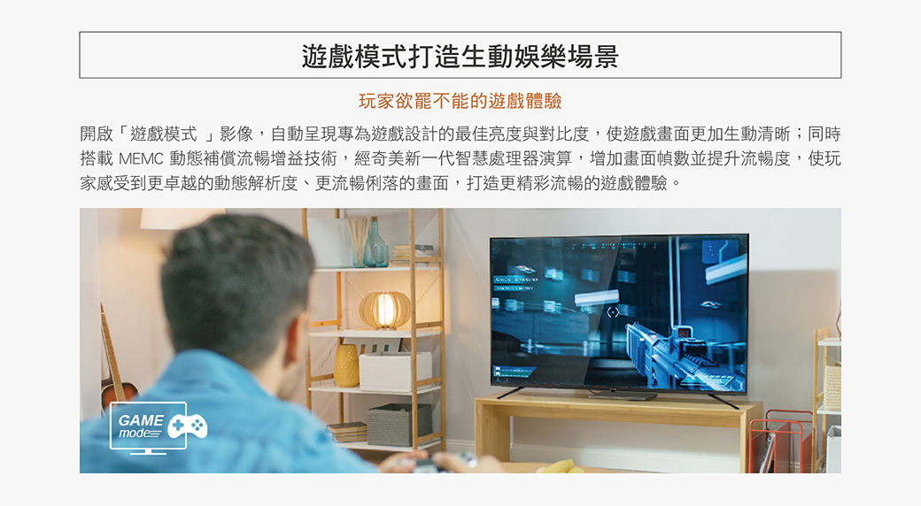 ■ 遊戲模式 / MEMC動態補償科技 / Motion Pro 240 動態流暢增益技術