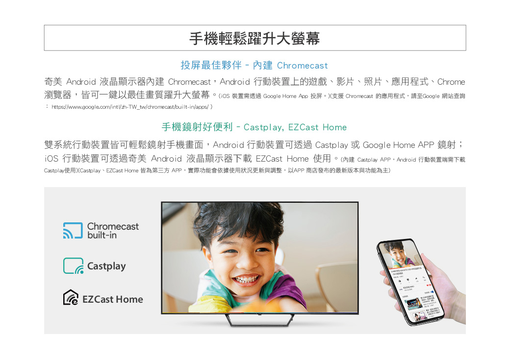 ■ 內建YouTube / 內建CastPlay / 內建Chromecast
