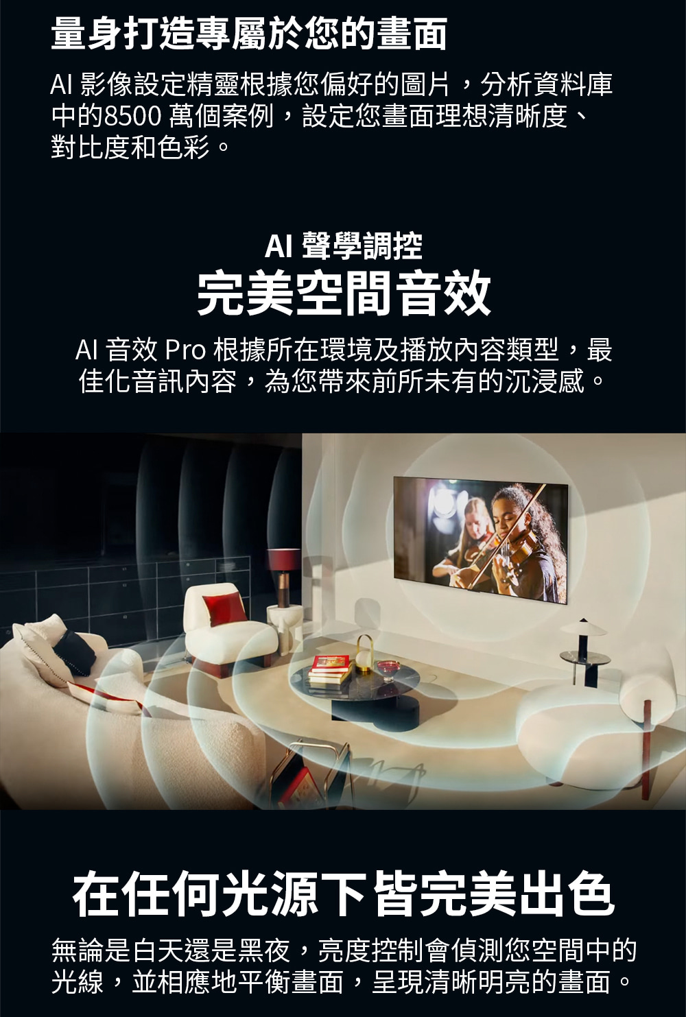 ■ LG OLED evo 4K 自體發光科技,智慧增亮引擎提升亮度讓畫面更立體